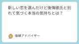 こうなってしまうと、新しい彼との関係もギクシャクし、結局どちらとも幸せになれない…という悪循環に陥ることもあります💦